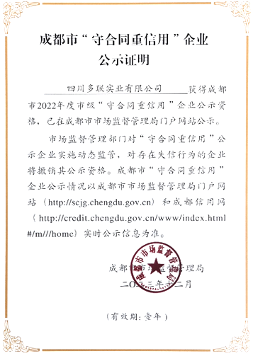 喜讯丨k8凯发官网成功获评2022年成都市“守合同重信用”企业